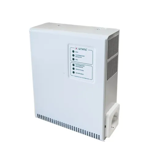 Корпус оснащается качественными и надежными настенными креплениями, поэтому изделие легко монтируется на стену при помощи специального кронштейна. Проработана и система перегрузки. При отключении прибора из-за перегрузки, стабилизатор произведет повторное включение в течение нескольких секунд.