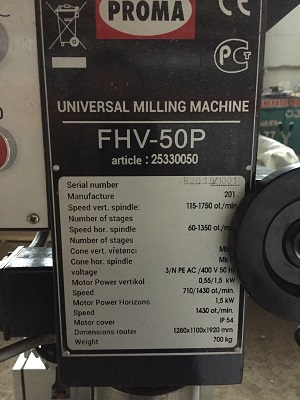 ООО «ГК ТехноСпецСнаб» осуществила поставку универсального фрезерного станка FHV-50P производства PROMA для предприятия в Самаре.